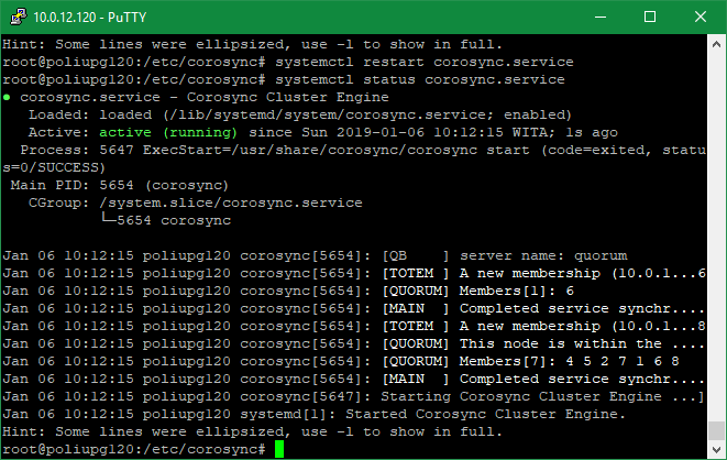 dan saya mencoba copy corosync.conf dari node yang tidak mengalami masalah dan cluster running. Alhasil cluster running setelah restart corosync.service